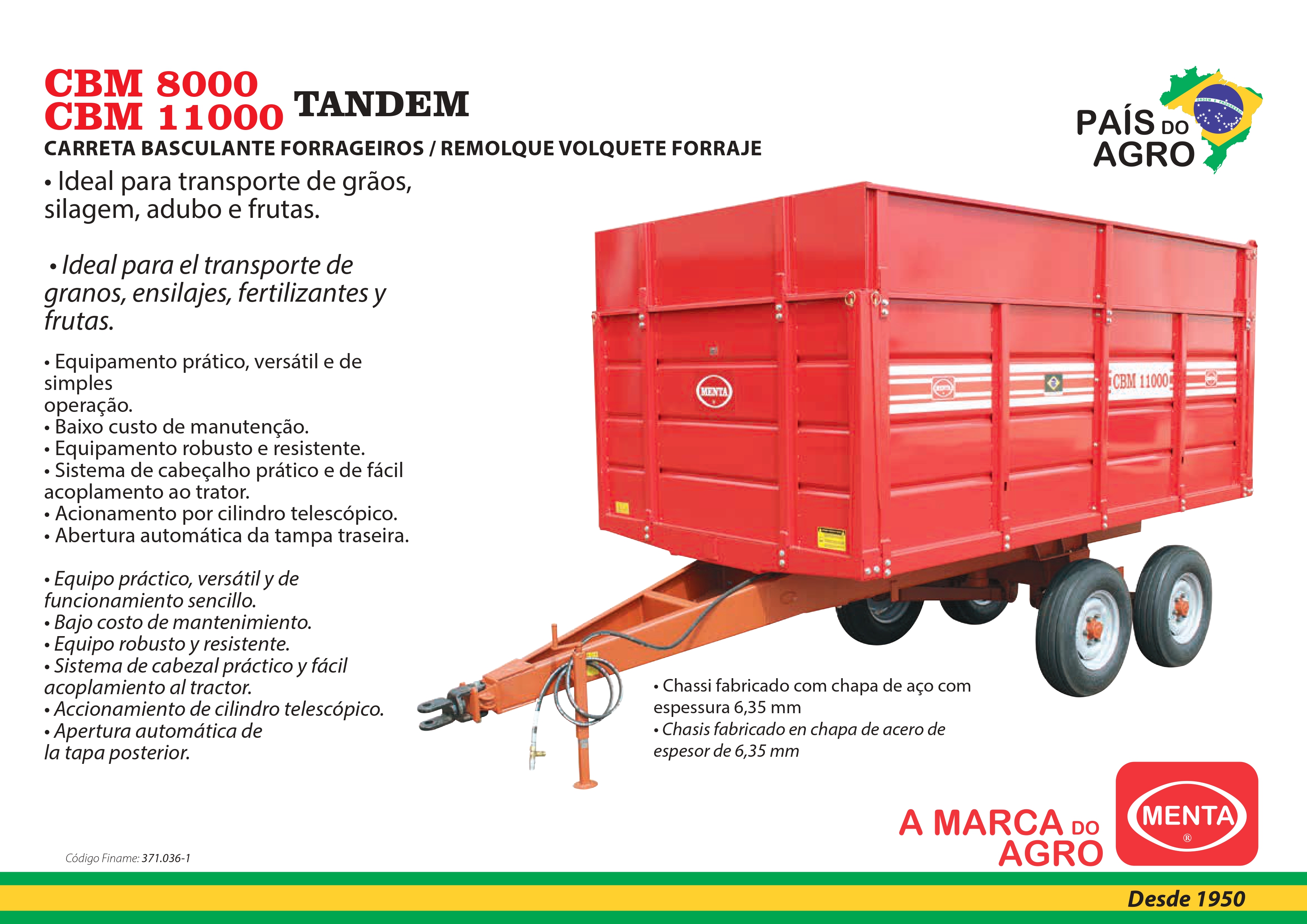 • Chassi reforçado de estrutura simples e resistente, totalmente construído em aço carbono.