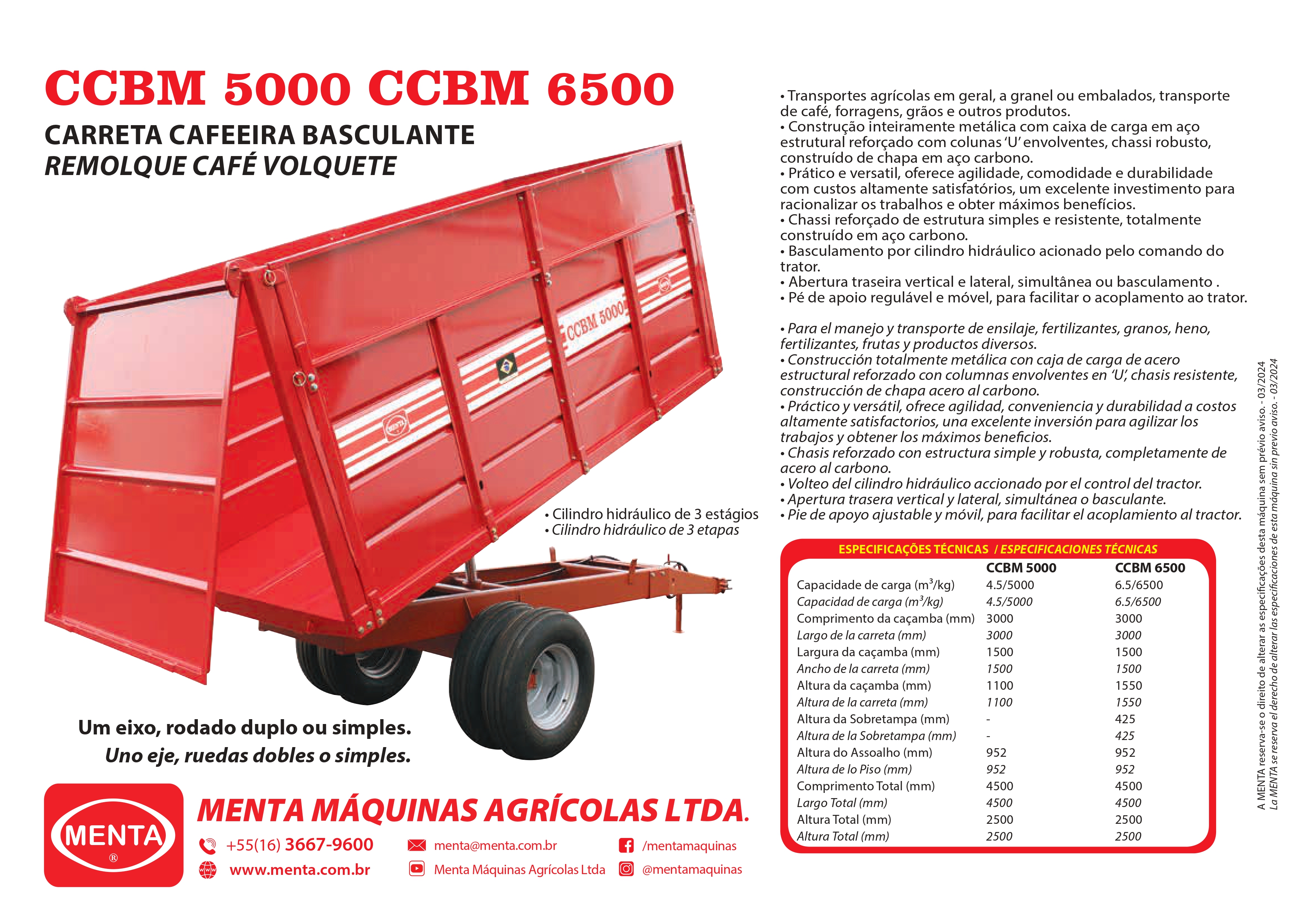 CARRETA BASCULANTE MENTA CCBM 6500 CAFEEIRA 1 EIXO
