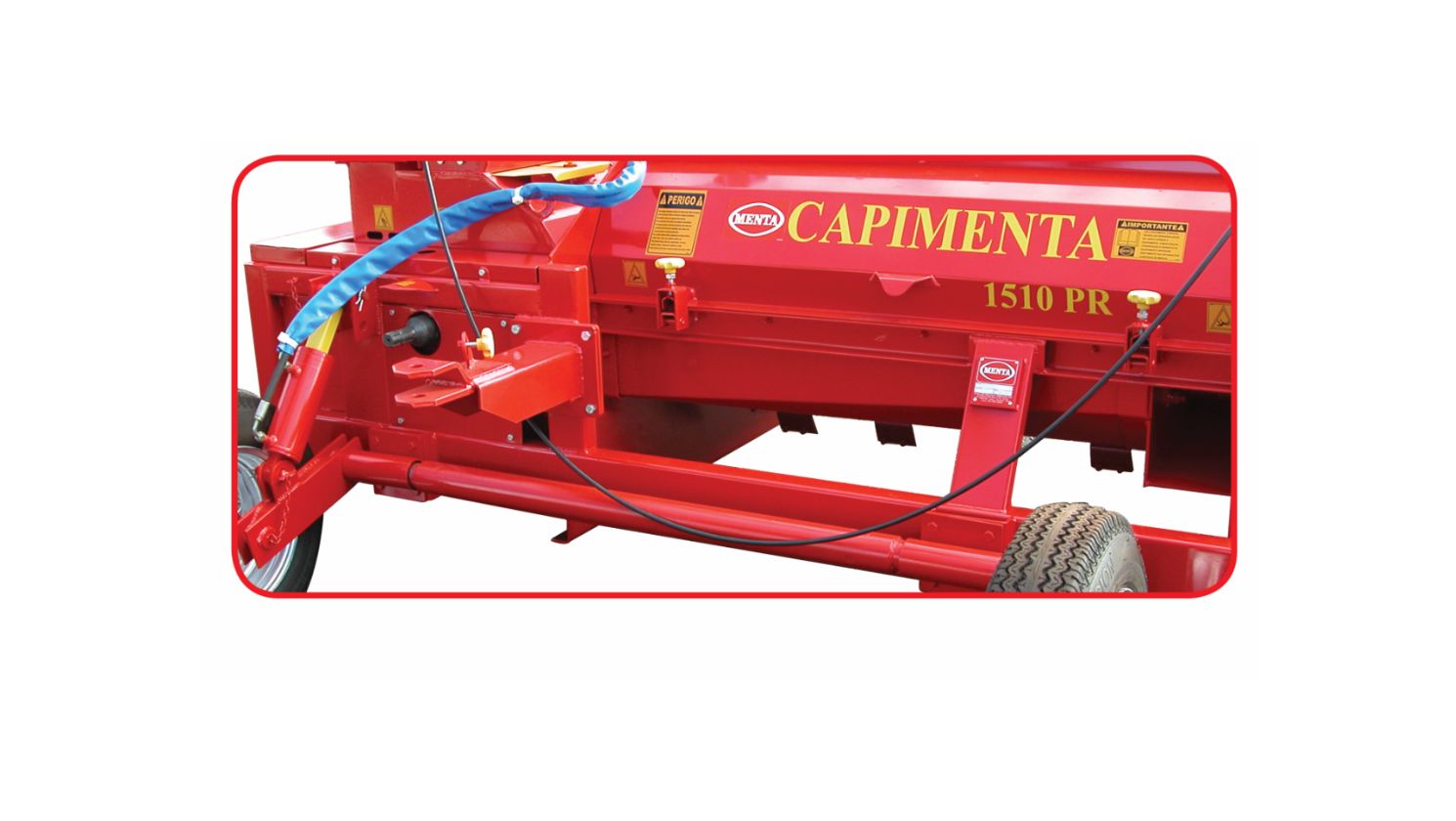 A CAPIMENTA foi desenvolvida para colher capins Tanzânia, Mombaça, Elefante, Napier, Braquiarão, Colonião, Braquiária Decumbens, Coast-Cross, Tifton e outros capins forrageiros. Capim particulado no tamanho certo, ensilado ou servido diretamente no coxo é garantia de rebanho bem alimentado e lucro certo para o pecuarista. Com 1,50 metros de largura de corte a CAPIMENTA 1510 PR é uma colhedora de forragens robusta e compacta, dimensionada para trabalhar em capineiras ou também nas entrelinhas de pomares de laranja. Acionada por trator de 75 cv ou superior, a CAPIMENTA 1510 PR tem uma capacidade nominal de produção de30 a 50 m³/ hora em condições favoráveis do terreno e cultura. O corte é pequeno, o rendimento é grande e o capim vira alimento para seu rebanho.