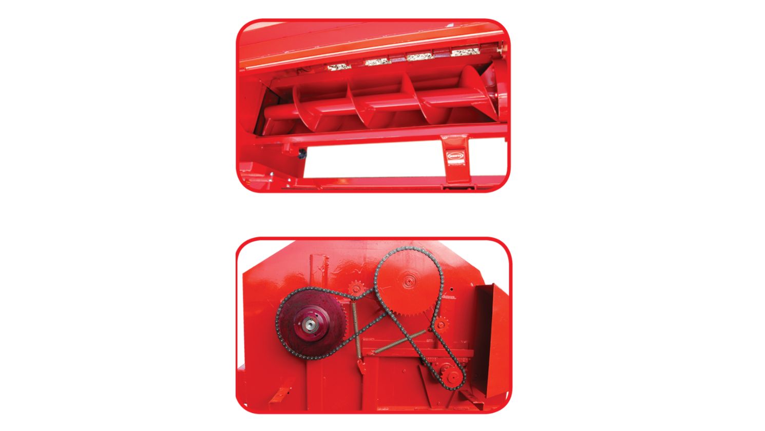 • Rotor repicador de 16 facas de corte frontal transversal.