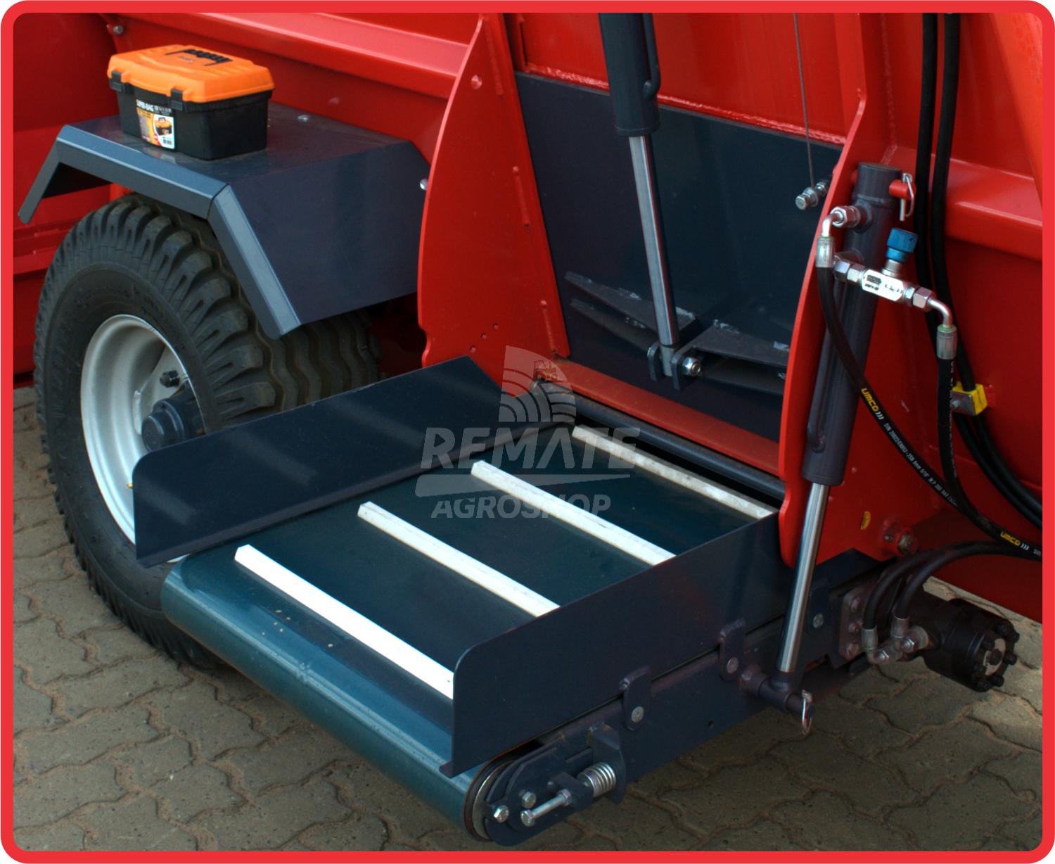 Com estrutura robusta em aço de alta resistência, com sistema de acionamento na tomada de força do trator e com bomba hidráulica com reservatório independente, mistura homogênea com duas roscas sem fim cortadores e misturadores em aço de alta resistência com descarga lateral esquerda que descarrega diretamente ao cocho.